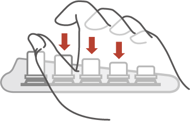 L'inclinaison de la surface du clavier de 3° garantit un alignement confortable avec les doigts de la main droite. Le fait de disposer les touches elles-mêmes dans une configuration en escalier, mais non inclinées, permet de conserver un sens de frappe vertical. Cette toute nouvelle structure facilite la saisie dans une position naturelle de la main.