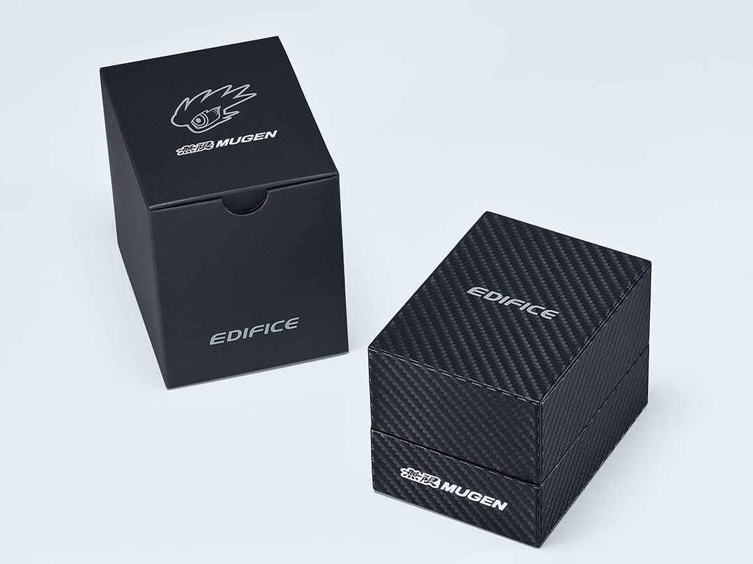 Les logos MUGEN et EDIFICE sont gravés à l'arrière du boîtier.