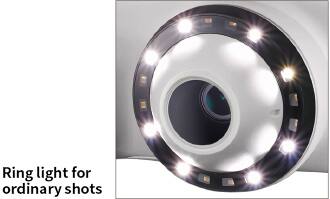 Bei der Aufnahme eines normalen Fotos ermöglicht eine gleichmäßige Ausleuchtung durch das Ringlicht außerhalb des Objektivs eine originalgetreue Wiedergabe des Farbtons. Im Nahaufnahmen-Modus liefert die Beleuchtung im Inneren des Objektivs eine stabile, klare Bildqualität.