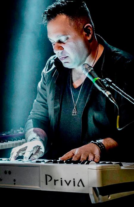 Em 1993, iniciou sua carreira artística tocando em bandas de diferentes estilos, igrejas, danças e boates, na prestação de serviços para estúdios e cantores.