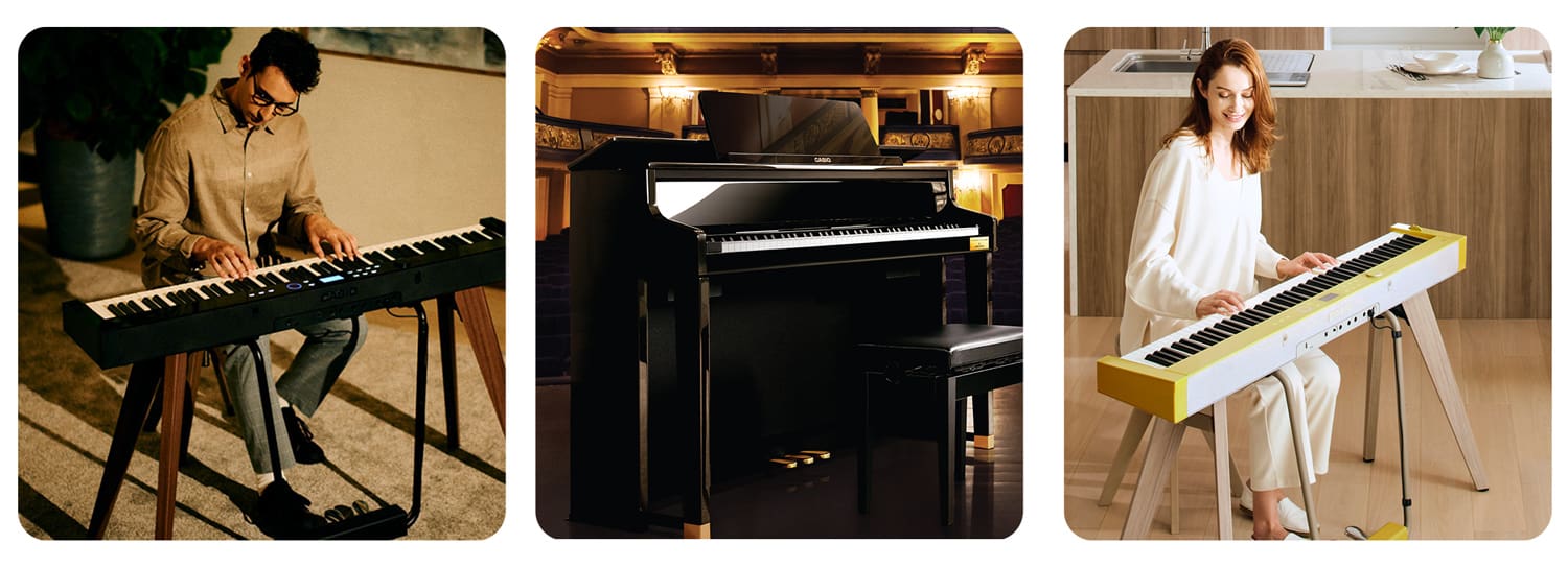 Autêntico ao toque e design versátil, os pianos e teclados da Casio estão equipados com tecnologia de sistema de som de ponta e traz uma sensação de liberdade reinventada para o piano e para quem toca.