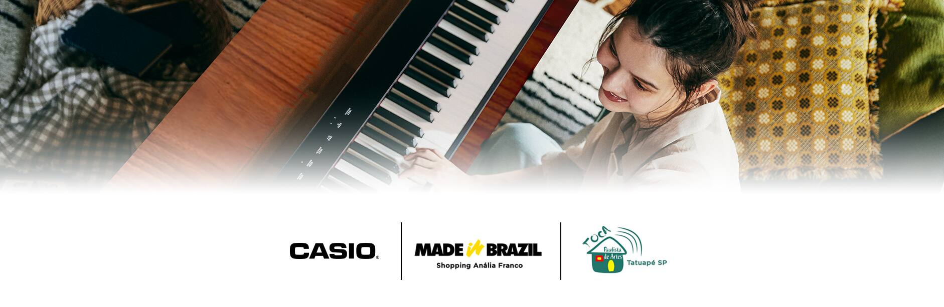 1.1 A promoção “Compre 1 piano CASIO e Ganhe 4 aulas grátis” (“Promoção”) é uma ação realizada pela Casio Brasil Comércio de Produtos Eletrônicos Ltda., empresa com sede na Rua Loefgren, 1.057, Vila Clementino, São Paulo/SP, inscrita no CNPJ sob o número 10.172.255/0001-95, doravante denominada como “CASIO”, e pela Toca Paulista de Artes, escola com sede na Rua Monte Serrat, 599, Tatuapé, São Paulo/SP, inscrita no CNPJ sob o número 28.400.888/0001-79, doravante denominada como “Toca Paulista de Artes”, em conjunto com a loja Made Express Analia Franco Ltda., localizada no Shopping Anália Franco, loja LUC N OQ 16/17, Avenida Regente Feijó, 1739, Vila Regente Feijó, São Paulo/SP, inscrita no CNPJ sob o número 30.097.387/0001-07, doravante denominada como “Made in Brazil”, de acordo com os seguintes termos (“Regulamento”).