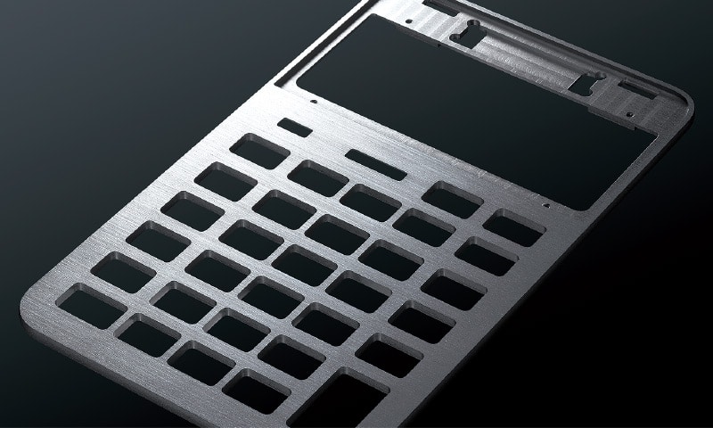 Geschnittenes Aluminiumgehäuse mit Hairline-Finish.