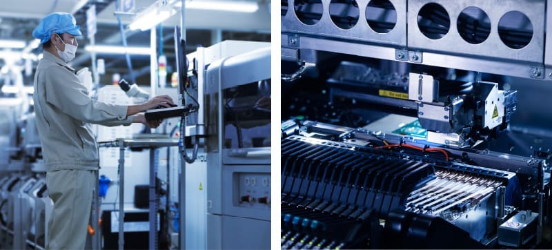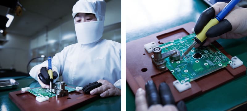 Die Leiterplatten werden bei Yamagata Casio in einem Verfahren hergestellt, das auch die Montage von Chips und die Verarbeitung zur Verbindung von Halbleitern umfasst - Aspekte, die in Japan nur selten zu finden sind.