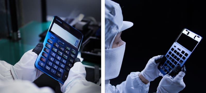 Die Techniker unterziehen die Rechner einer strengen Prüfung, um festzustellen, ob ihre Qualität den Standards eines Spitzenmodells entspricht. Dabei werden Bereiche wie die Bedienung der Tasten und der LCD-Anzeige sowie das äußere Erscheinungsbild des Rechners geprüft.