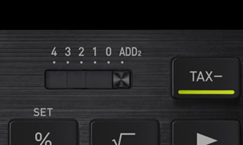 Die Hebel für die Auswahl der Rundungs- und Dezimalstellen sind mit einer drehenden Optik versehen, die den Hebeln ein charakteristisches Flair verleiht.