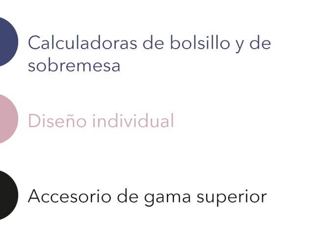 Calculadoras para empresarios que quieren expresar un estilo personal, incluso en las herramientas de trabajo. Los elegantes colores del diseño en un solo tono aportan un toque sofisticado a cualquier entorno de trabajo.