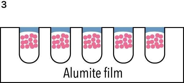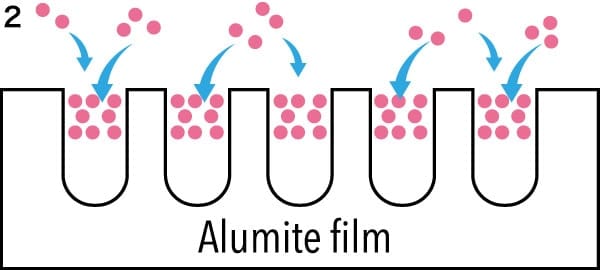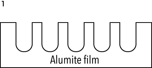 1: Se añade una película de alumite a una superficie metálica.