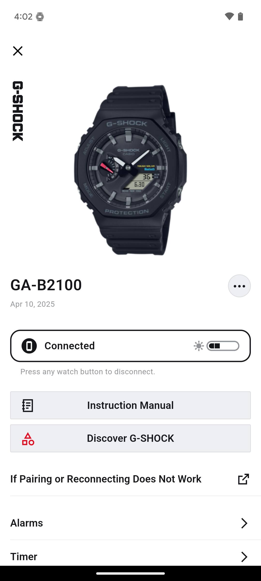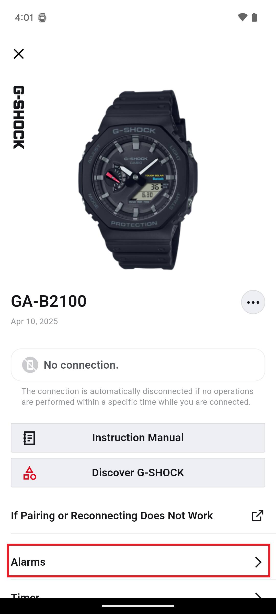 • If "Automatic Connection" is NOT displayed, your watch uses Part-Time Connection. Example: GA-B2100 (User’s Guide No. 5689)