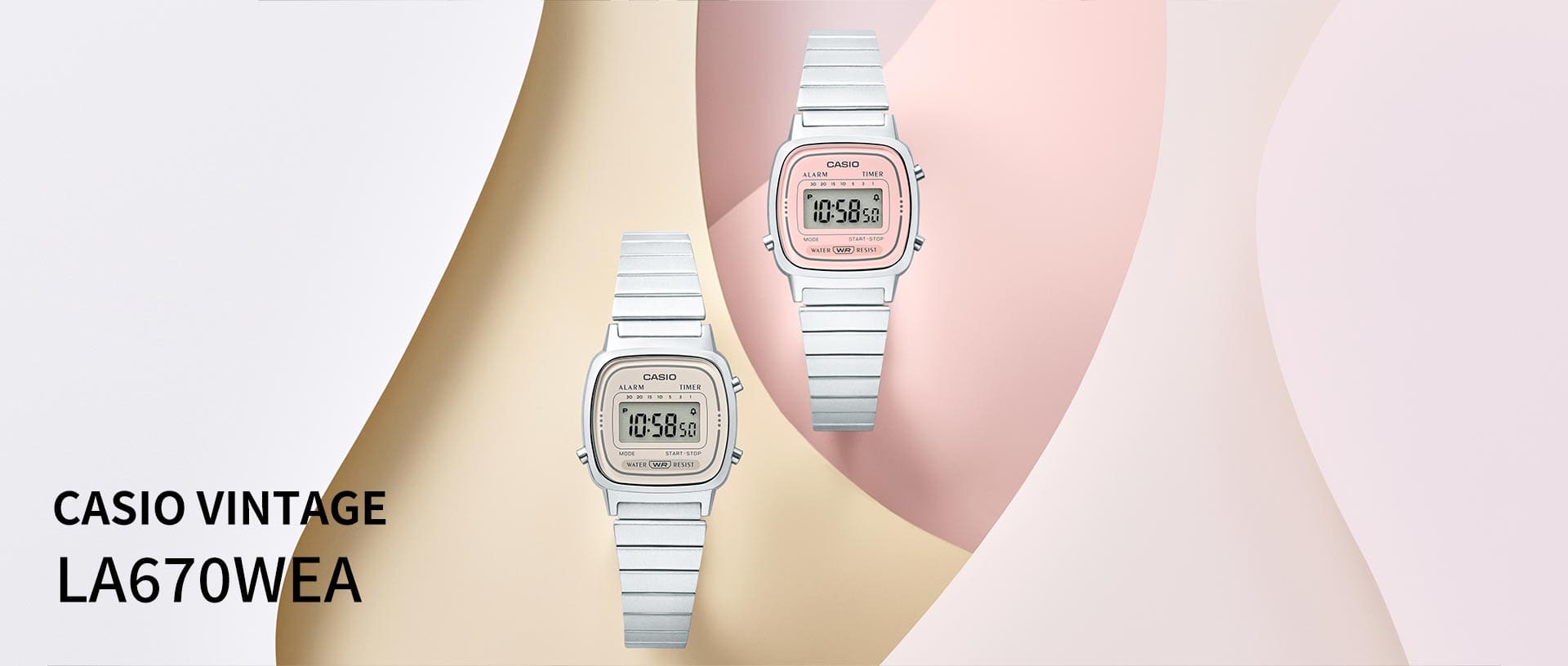 Classic design, accented by nostalgic hues Subdued face colours in a range of tranquil, grey-tinged hues add a feel of urban-retro flair to the classic design combination of a square case paired with a metal band. A digital watch for lovers of fashion who like to express their own style while staying on top of the latest trends.
