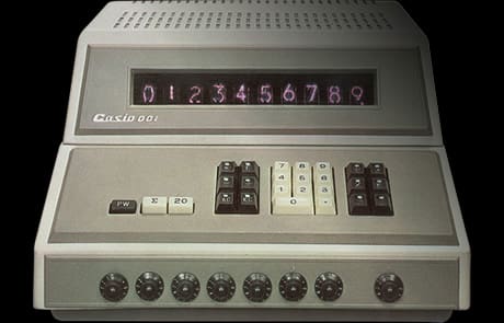 En 1965, CASIO lance la Model 001, sa première calculatrice électronique de bureau et la toute première au monde à disposer d'une fonction mémoire.