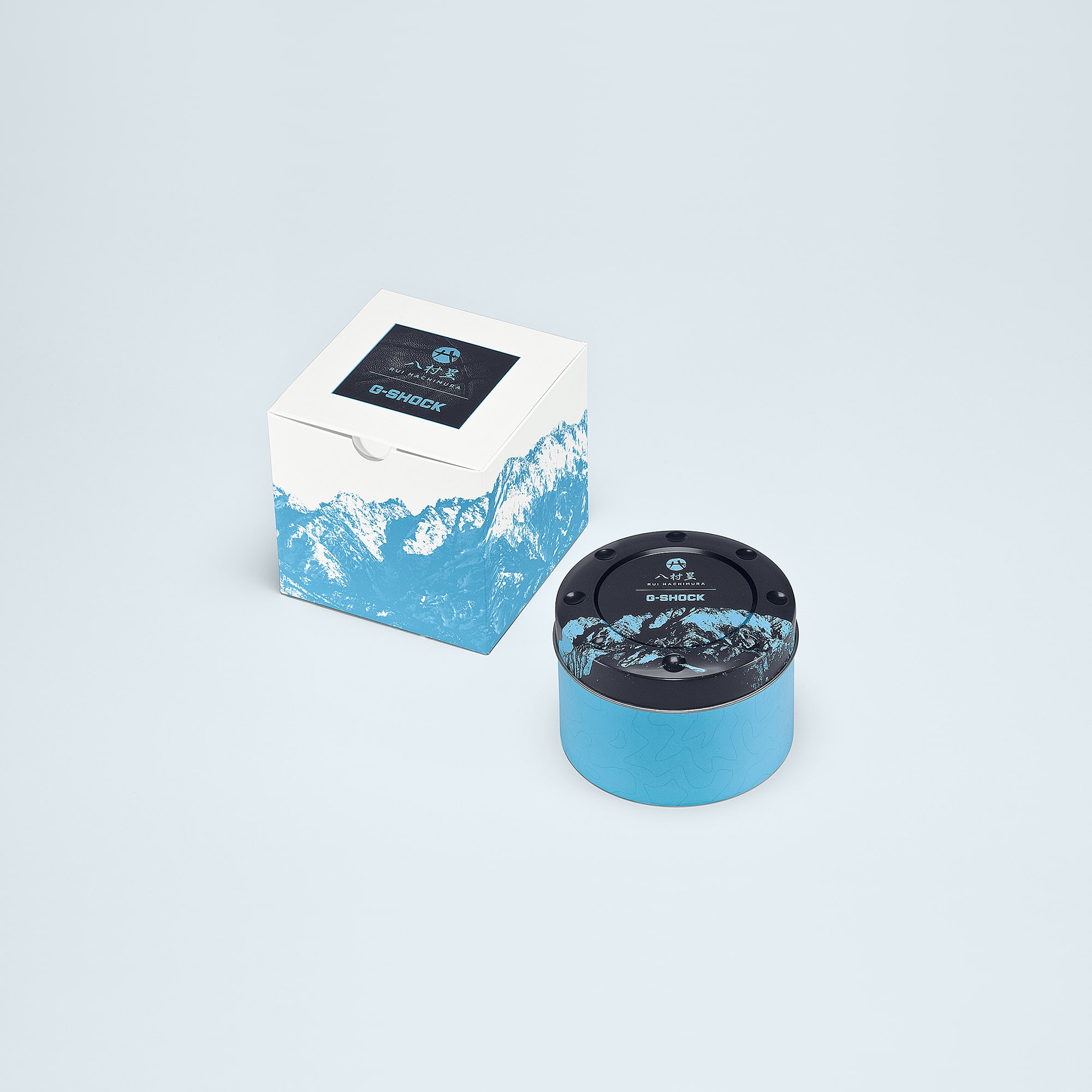 The new DW-6900RH is a signature model designed in collaboration with Hachimura. This design begins with the shock-resistant DW-6900, nicknamed the “three-eyed watch” because of the row of three indicators on the dial, and highlights the Tateyama mountain range in Hachimura’s home prefecture of Toyama.