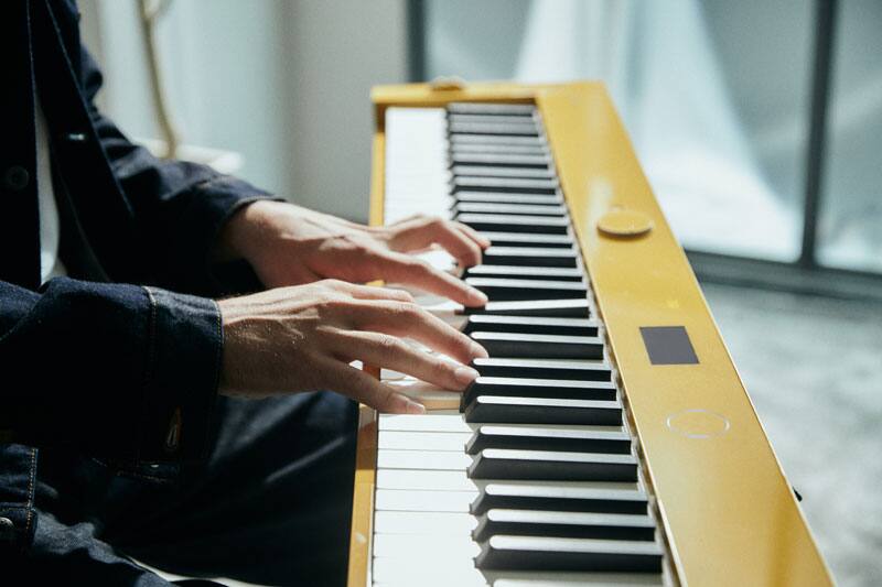 Lorsqu'il a découvert le Privia PX-S7000, Kiefer a été immédiatement attiré par sa couleur unique, "Harmonious Mustard (moutarde harmonieuse)."