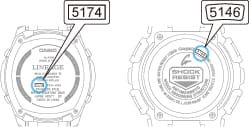 Si le numéro de module de votre montre est l'un des suivants, veuillez corriger l'heure comme indiqué dans le Guide d'utilisation rapide. Le numéro du module (quatre ou trois chiffres) est indiqué à l'arrière de votre montre.