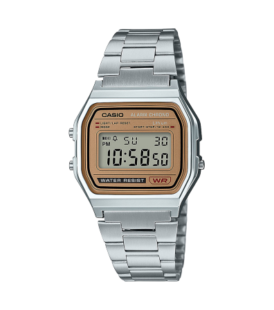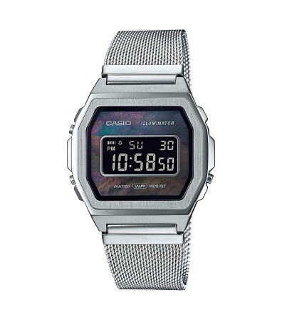 Même si un bracelet n'a vraiment qu'une seule une fonction importante (la bonne tenue de la montre au poignet), cet accessoire permet également d'exprimer votre profonde maîtrise du style. Les montres CASIO VINTAGE COLLECTION ROUND utilisent divers styles de bracelets afin de souligner le caractère de chaque montre : Le style milanais finement tressé, avec des bracelets articulés argentés épurés ou le style bracelet Jubilé, avec une surface en acier brossé et un luxueux revêtement traité par « Ion Plating », pour une résistance renforcée aux rayures. De quoi aurait l'air, par exemple, A171-WEMG-9A?