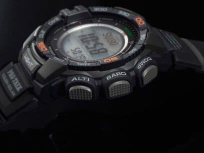 TRIPLE CAPTEUR : présentation de la 3e version du triple capteur. C'est une technologie originale CASIO perfectionnée qui permet de réduire la taille des capteurs qui deviennent plus petits à 95 % par rapport aux modèles précédents pour les adapter à la toute nouvelle conception compacte des montres PRO TREK. Malgré leur petite taille, les nouveaux capteurs de ces modèles offrent une plus grande précision de lecture et une meilleure efficacité énergétique. Ces modèles à triple capteur fournissent des relevés d'altitude, de pression barométrique et de direction plus précis que les modèles précédents. En outre, une alarme de tendance de la pression barométrique avise l'utilisateur en cas de changements soudains des valeurs de pression. Les caractéristiques de conception incluent un boîtier conçu afin de garantir de bonnes performances de l'équipement pour les activités en plein air. De grands boutons latéraux et un accès d'une simple pression aux relevés de la boussole numérique, de pression barométrique, d'altitude et de température vous permettent de garder les informations importantes à portée de main. Parmi les autres caractéristiques, citons la fonction Tough Solar, l'étanchéité jusqu'à 100 mètres et d'autres. Ces modèles sont entièrement conçus et pensés pour en faire des pièces essentielles comme équipements de plein air. Tough Solar garantit une utilisation stable, même lorsque vous faites appel à des fonctions gourmandes en énergie. • Triple capteur : Boussole, baromètre/thermomètre, altimètre • Résistant aux basses températures (-10 °C)