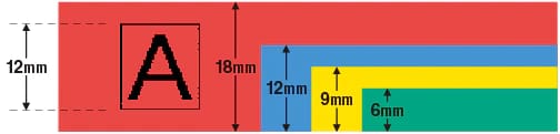 處理 18、12、9 和 6 毫米寬度的標籤帶。