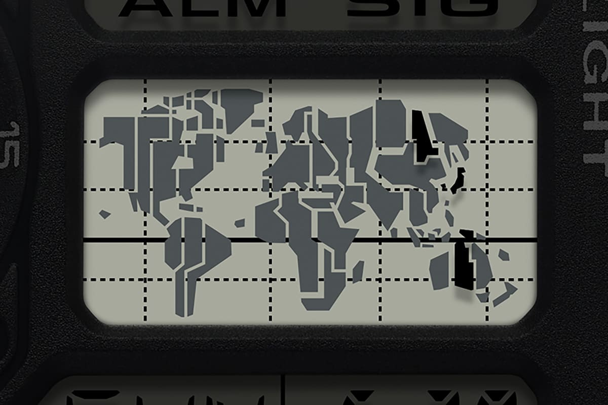 1980 年代中期,首款採用指針式 LCD 顯示的「雙生圖表」AE-200 問世,同時搭載世界地圖顯示功能的 W-50U 亦同步登場。AE-1200 正是承襲這兩大錶款的標誌性設計,最終淬鍊出這款以獨特多功能顯示著稱的數碼時計傑作。