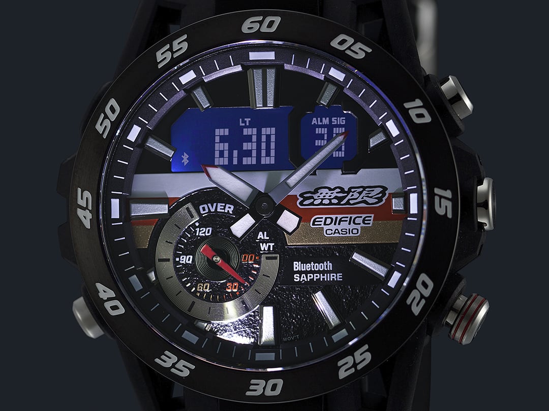 EDIFICE 和 MUGEN 聯手推出一款非常特別的高性能賽車手錶聯乘作品。 EDIFICE MUGEN 版本體現世界知名的 MUGEN 品牌身份。該品牌是本田汽車賽車引擎和售後零件的開發商和製造商。錶盤、錶帶和錶帶環上均飾有 MUGEN 標誌和四種品牌顏色(白色、紅色、金色和黑色)。錶帶採用柔軟耐用的 Alcantara 材料製成,並印有標誌性的 MUGEN 「Eye Commander」標誌。就連錶圈上的分鐘顯示也採用了 MUGEN 提供的字體。 由碳纖維增強樹脂製成的錶殼,重量輕但堅固,其獨特的設計靈感源自方程式賽車懸架,其錶耳配置為四臂佈局。 全賴智能手機連接,手錶在配對智能手機的範圍內時會自動連接,並自動調整以實現準確計時。可透過智能手機應用程式輕鬆存取世界時間、鬧鐘和其他操作。超級光源照亮手錶指針和數碼顯示屏,藍寶石水晶錶面則可防刮擦。 這款非常特別的手錶專為全世界的 MUGEN 粉絲而設。