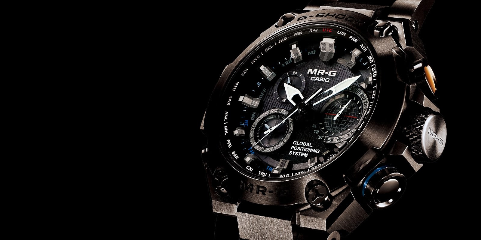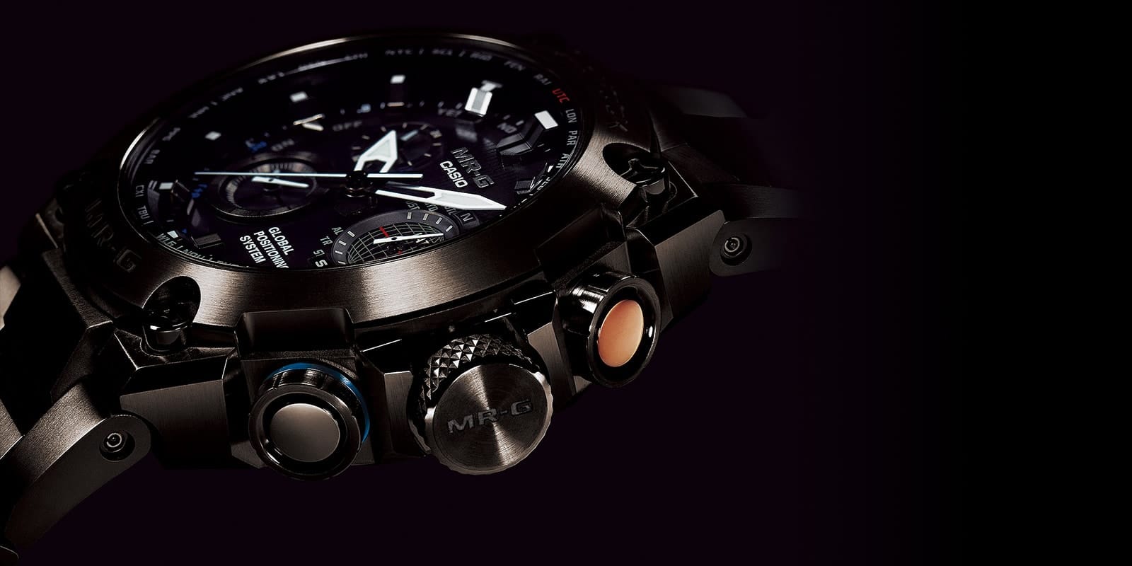 一款來自 G-SHOCK 最豪華系列 MR-G 的 GPS 混合無線電控制、太陽能型號。首款採用全金屬錶殼並配備抗震結構和 GPS 混合無線電太陽能的手錶,可以顯示世界各地的準確時間。此外,外殼防護結構使錶冠既可操作又抗衝擊,這在以前難以實現。鈦金屬錶殼和錶帶經過 DLC 和深度硬化處理,並採用全黑色,以實現緊湊的設計。對影響強度和質量的每一個細節也給予了特別的關注,這在藍寶石玻璃水晶上使用的紋理拋光和抗反射塗層中得以體現。這是一款讓世界各地的硬漢都充滿了「日本製造」的自豪感的型號。
