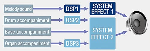 Prosesor sinyal digital berkecepatan tinggi diterapkan ke setiap jenis suara, seperti melodi, drum dan bass pendukung, atau organ. Bahkan ansambel standar keyboard menghasilkan suara unik dari setiap instrumen untuk pertunjukan yang ekspresif.