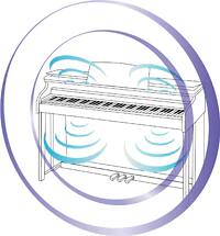 CASIO mengembangkan sistem speaker baru khusus CELVIANO Grand Hybrid untuk menghasilkan karakteristik piano grand akustik suara yang memancar ke atas dan ke bawah. Sistem audio empat saluran menggabungkan enam speaker, yang dipasang dengan desain struktural untuk mengeluarkan suara dari bagian dalam piano. Sistem menghasilkan pengalaman bidang suara yang sama, membuat pemain merasa seolah sedang memainkan piano grand akustik.