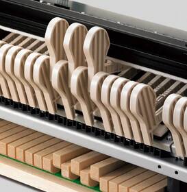 Tuts keyboard terbuat dari kayu spruce Austria kualitas tinggi, sama seperti bahan tuts piano grand C. Bechstein. Kami mencurahkan perhatian mendetail dalam proses pengeringan dan pengolahan bahan berkualitas tinggi sebelum akhirnya digunakan untuk membuat keyboard.