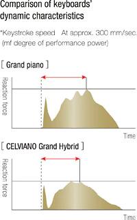 CASIO mengembangkan sistem keyboard baru bernama “Keyboard Gerak Palu Grand Natural” untuk menghadirkan sentuhan sejati khas piano. Sistem keyboard ini memiliki tuts kayu ukuran penuh dan palu yang mengikuti jalur gerakan seperti mekanisme piano grand concert. Tuts pada CELVIANO Grand Hybrid terbuat dari bahan yang sama seperti piano grand akustik. Keyboard menekankan detail pada finishing permukaan tuts dan kualitas kayu yang digunakan untuk bantalan tuts. Gabungan mekanisme gerak yang luar biasa dan bahan tuts berkualitas tinggi semakin meningkatkan sensasi memainkan piano grand akustik.