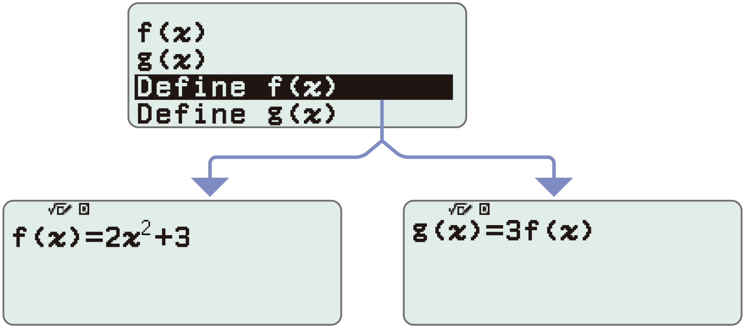 Anda dapat menyimpan fungsi dalam memori f(x) dan g(x). Lakukan penghitungan dengan fungsi yang telah ditentukan.