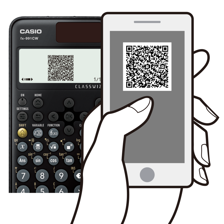 Buat QR code dari input persamaan ke kalkulator dengan operasi sederhana. Grafik dan grafis lainnya dapat ditampilkan di layar ponsel cerdas atau tablet.
