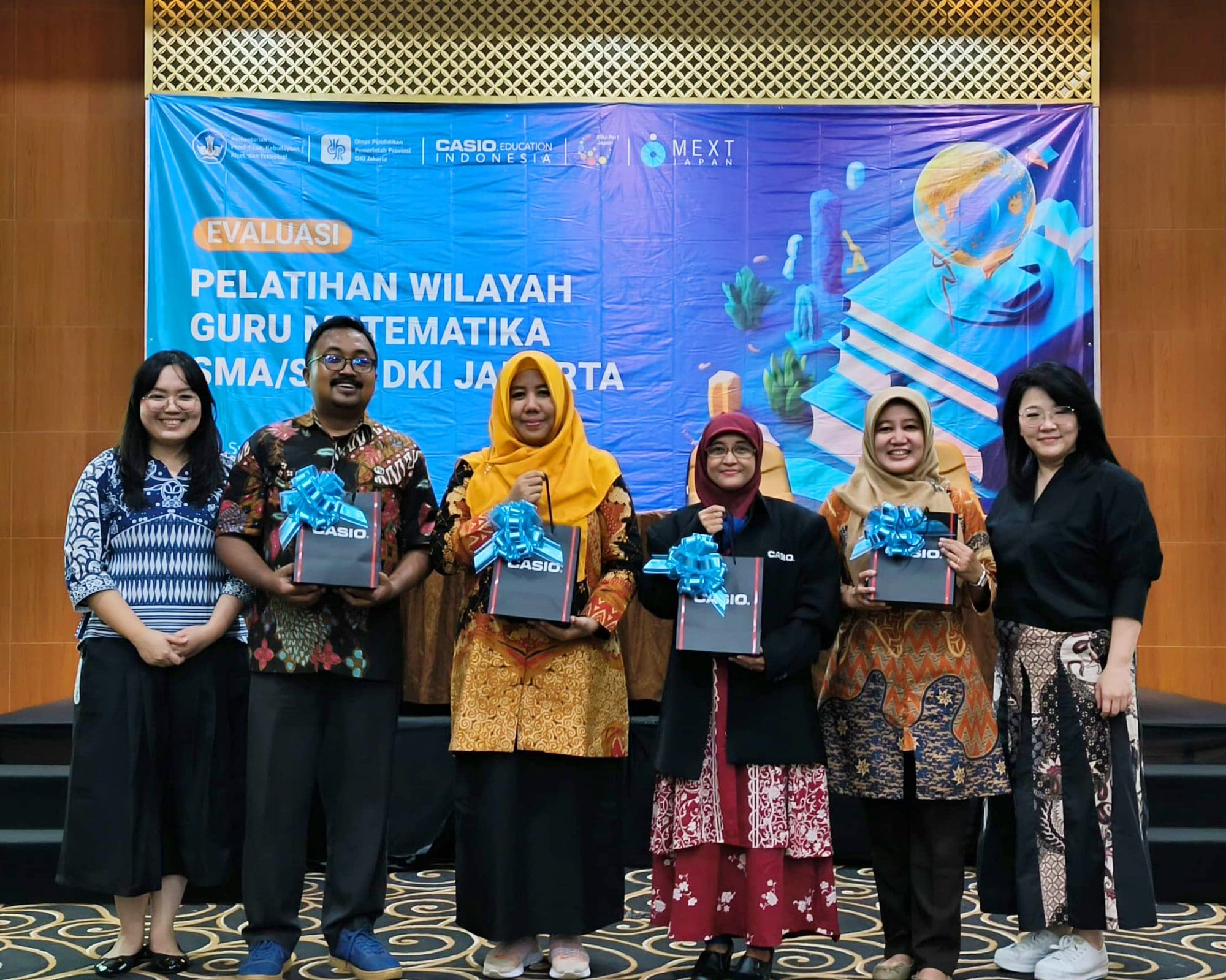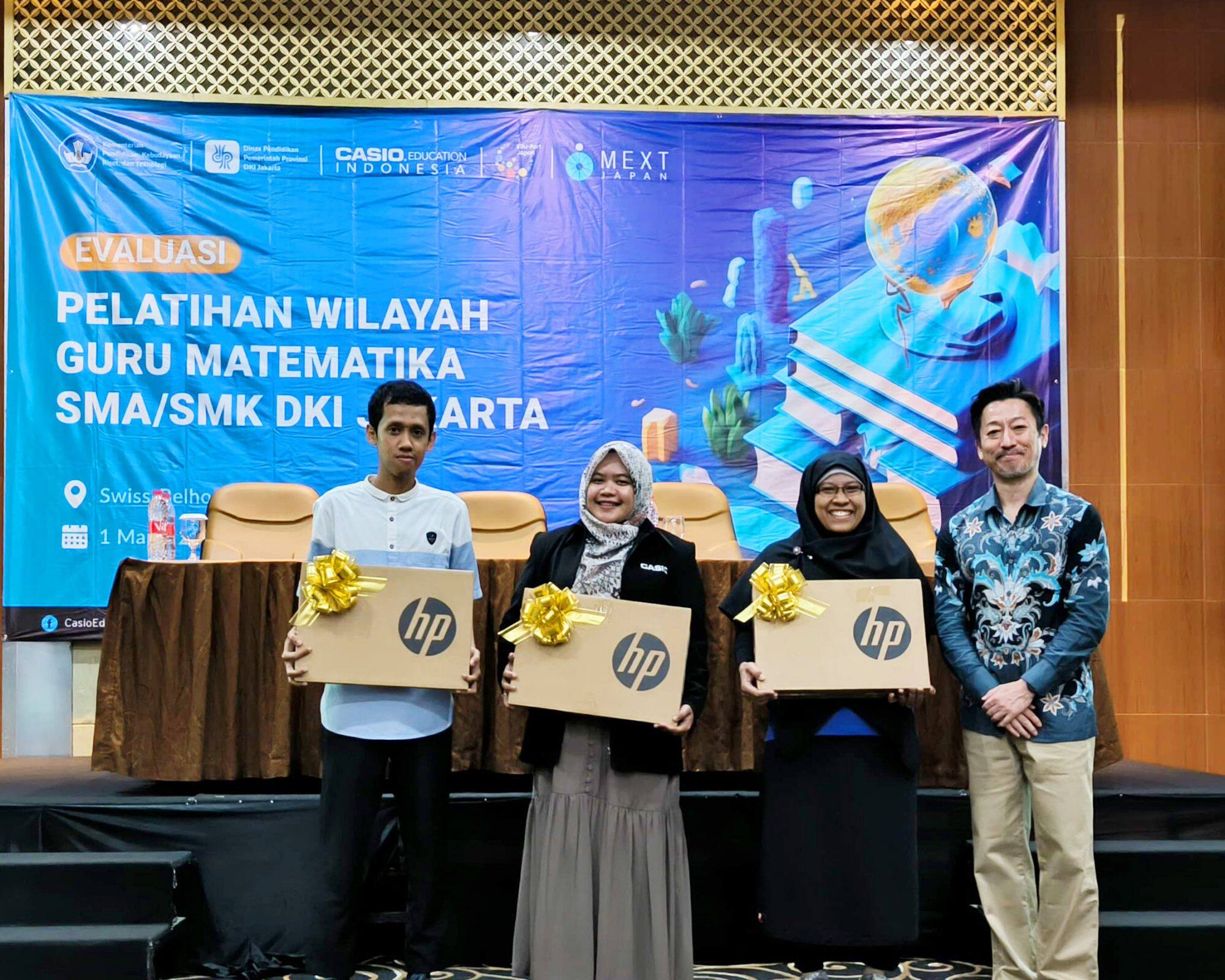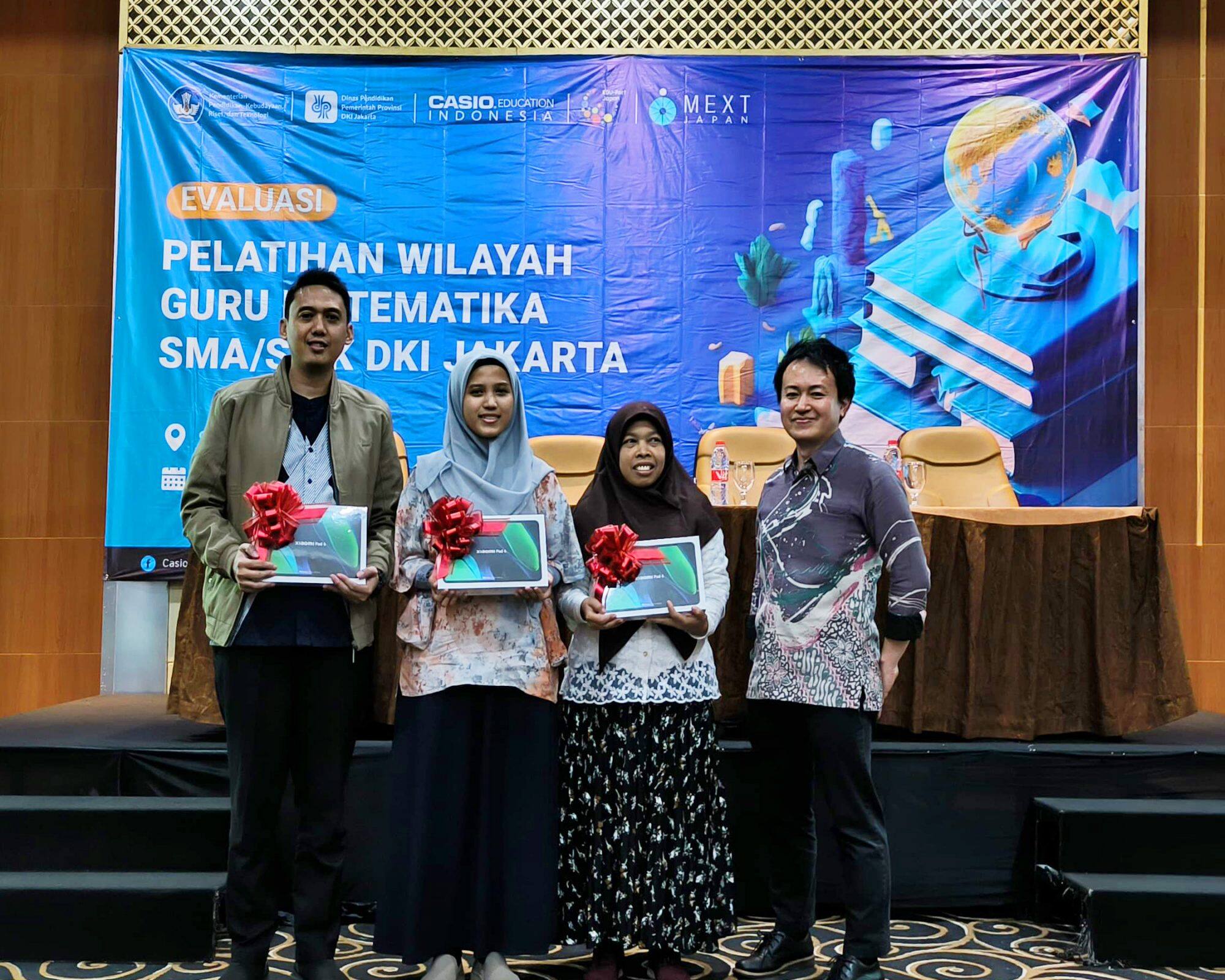 Selain melakukan evaluasi kegiatan, pada kesempatan ini CASIO Education Indonesia juga menyerahkan apresiasi kepada 15 guru pelatih berprestasi atas kontribusinya selama rangkaian kegiatan, serta seperangkat kalkulator saintifik kepada sekolah terpilih. Semoga apresiasi ini dapat memberikan dukungan positif demi kemajuan pendidikan khususnya dalam pembelajaran matematika di Provinsi DKI Jakarta.