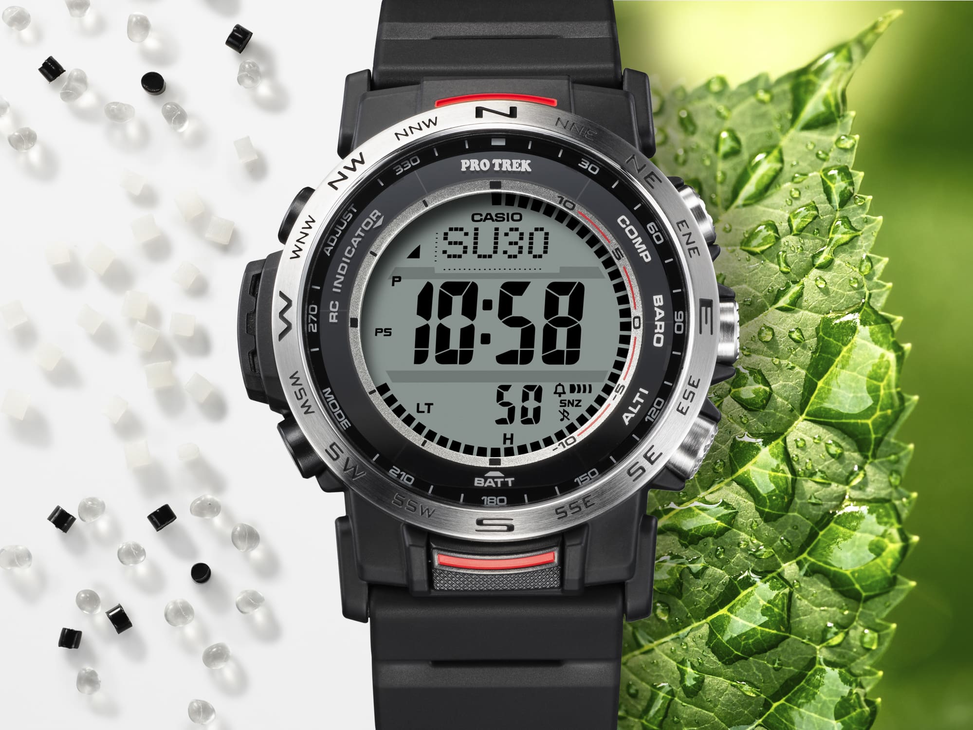 Dilengkapi layar digital yang mudah dibaca dan digunakan, bahkan pada jam yang berukuran ringkas. Komponen resin utama dibuat dengan resin berbahan dasar bio yang ramah lingkungan. Bobot ringan jam tangan ini juga mendukung kehidupan luar ruangan yang aktif dan sadar lingkungan. Ideal untuk berkemah, mendaki gunung, dan banyak lagi.