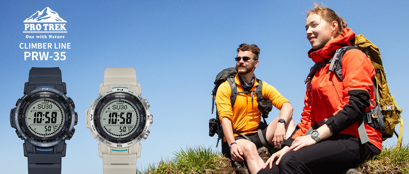 Memperkenalkan jam tangan yang sederhana dan ramah petualang dalam warna-warna khas luar ruang dari rangkaian perlengkapan luar ruang autentik PRO TREK untuk pencinta alam. Tali jam berwarna hijau dan bezel serta casing berwarna hitam berpadu menghasilkan desain trendi dan mudah dibaca. Jam tangan ini sama bertanggungjawabnya terhadap lingkungan seperti model dasar PRW-35, dengan casing, tali jam, dan bagian belakang casing terbuat dari resin berbasis bio, bahan yang diharapkan dapat membantu mengurangi dampak terhadap lingkungan. Tidak hanya ramah lingkungan, tetapi juga praktis. Triple Sensor memberikan pembacaan bantalan kompas, tekanan barometrik, suhu, dan ketinggian. Dilengkapi dengan kalibrasi waktu gelombang radio, Tough Solar, dan banyak lagi, jam tangan ini menghadirkan fungsionalitas canggih dan praktis yang Anda perlukan untuk bersiap menghadapi semua petualangan.