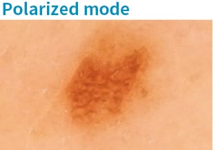 This mode blocks light emission from the surface of the skin, making it easier to observe pigment distribution beneath the skin's surface.