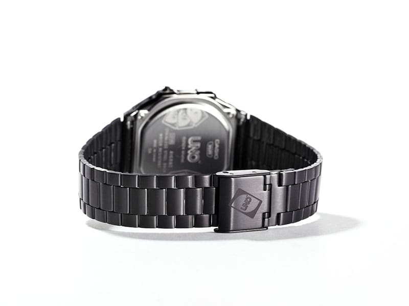 Presenting a collaboration between Casio watches and UNO™, the card game from Mattel, a pairing of two brands born in the 1970s. The collaboration model is based on the popular vintage style of the A168 watch and incorporates retro pop colors and design touches inspired by classic UNO™ cards throughout. These details, including on the watch face, case back, and band, project a casual sense of fun in a special watch that delivers a timeless sparkle that transcends the generations.