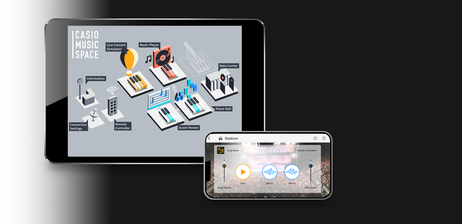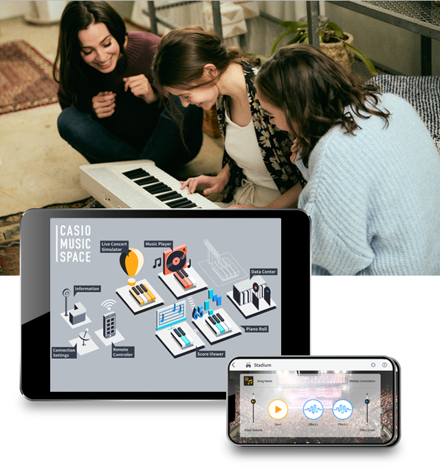 CASIO MUSIC SPACE is an app exclusively for Casio digital piano and keyboard users. When connected to your Casio piano or keyboard, the Casio Music Space app acts as digital musical score, a music teacher, a live performance simulator, and as an all-round app to enjoy learning and playing music. It’s for complete beginners, people taking up an instrument again, and anyone who wants to experience a new way of playing. Expand your enjoyment of music by watching, listening, and playing through the app.