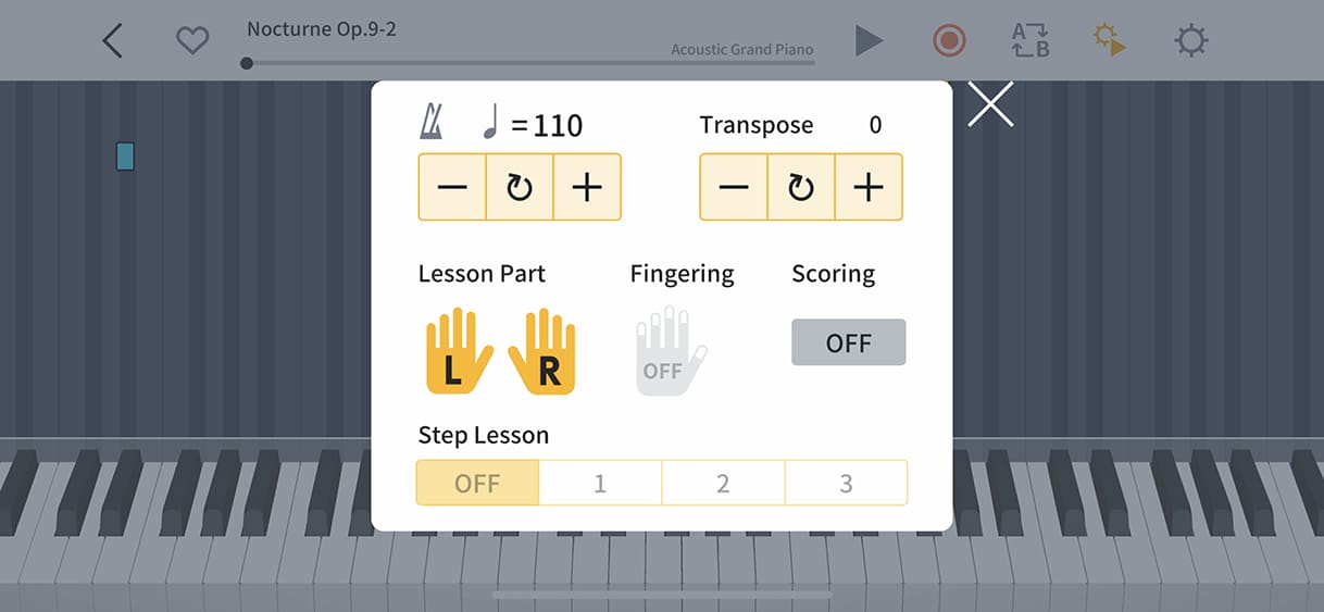 See how well you played with a score automatically calculated by the app, and listen back to your performance with the recording feature.