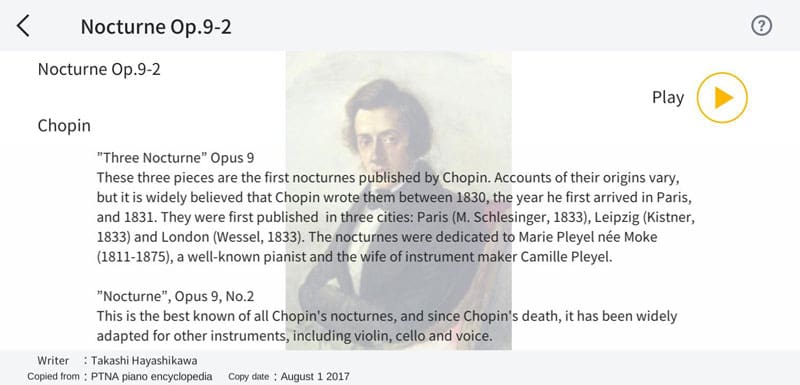 View explanations about selected pieces and composers, as well as the background and historical context in which the music was created. Understanding the music more deeply allows you to enjoy playing with a greater appreciation of each piece.