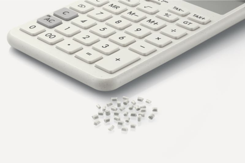 Recycled plastic is used for 59%* of the main body of the calculator. - Retractable Stand