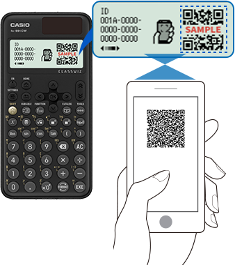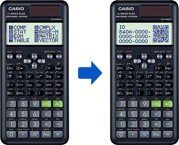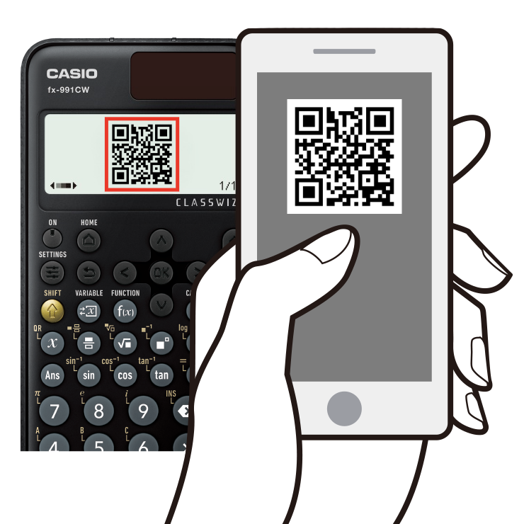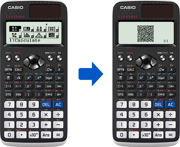 Press "ON" to power, and then "MENU", then "SHIFT", then "OPTN" to display the QR code on the calculator.