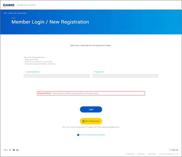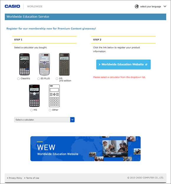 Select the calculator you bought and register your product information.