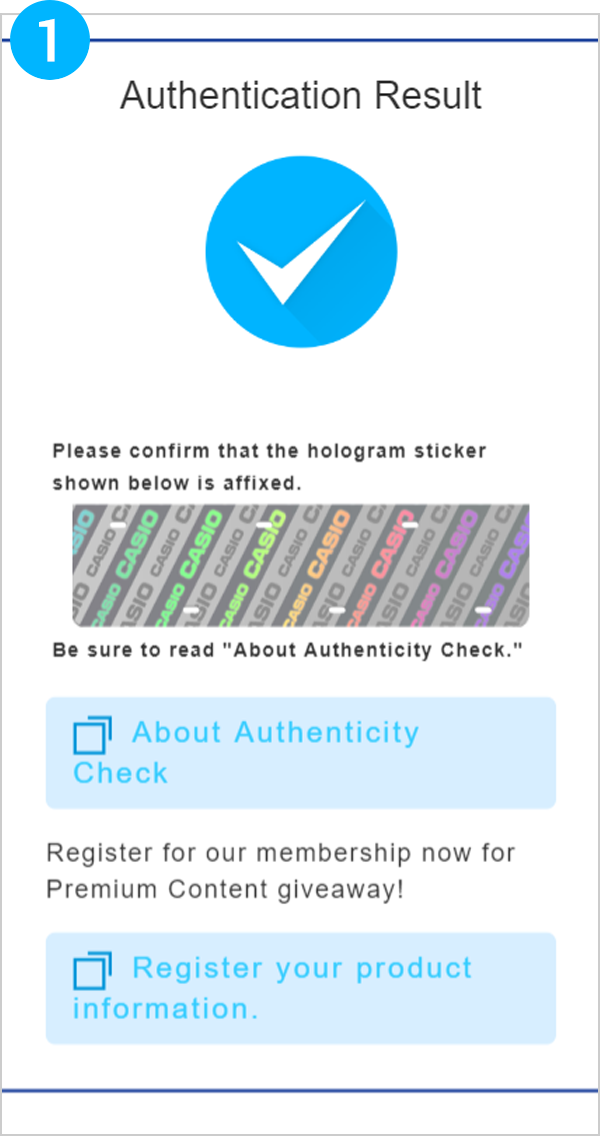 The Web Authenticity Check estimates the authenticity of the hologram sticker based on trends of the read status of the QR Code.