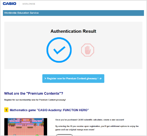 If no result appears when you read the QR code and CASIO’s website is displayed instead, it is NOT a genuine product. Do not purchase it.