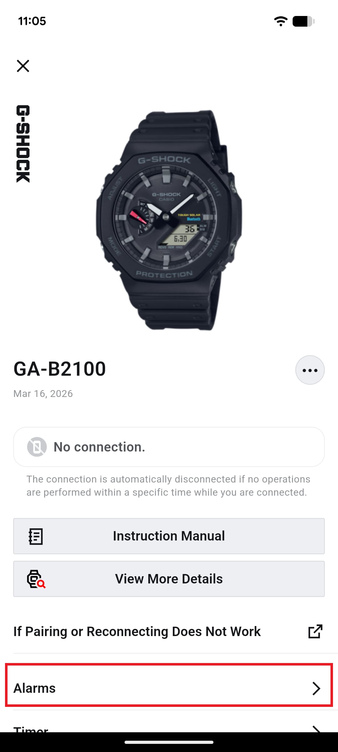 • If "Automatic Connection" is NOT displayed, your watch uses Part-Time Connection. Example: GA-B2100 (User’s Guide No. 5689)