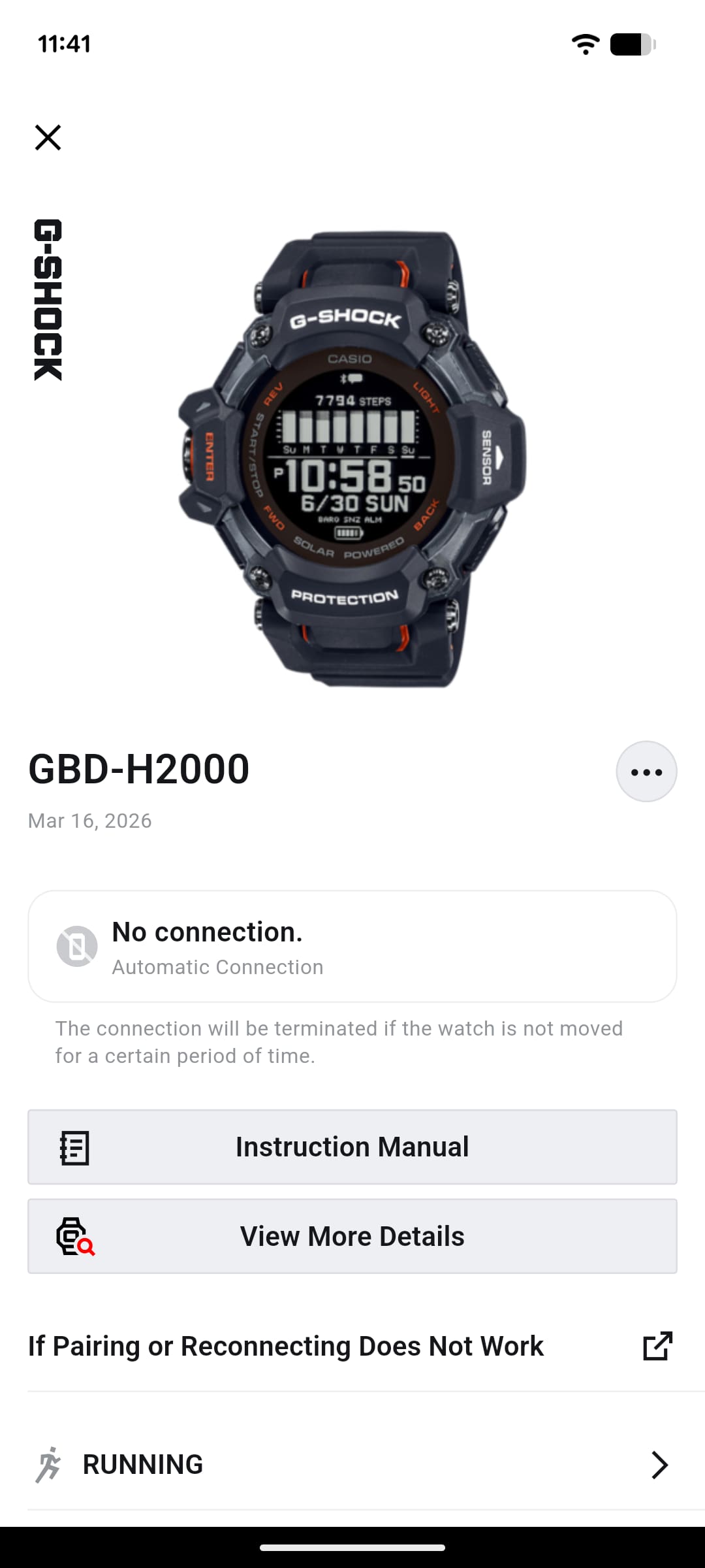 Go to the "My Watch" tab > Tap your watch model. > Check whether "Automatic Connection" is displayed below "Connected" / "Not Connected."