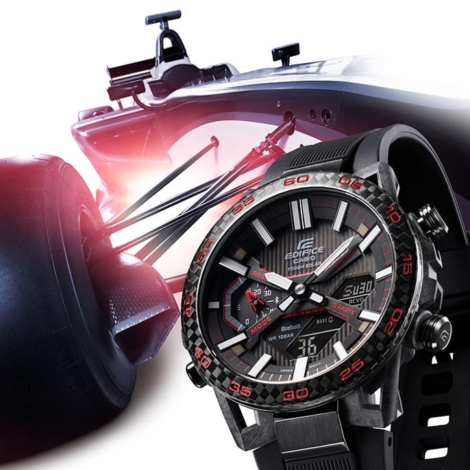 Solar-powered EDIFICE adorned with a ceramic bezel