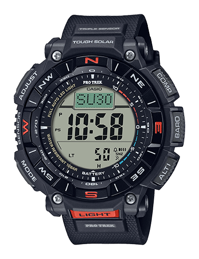 The embodiment of a tool concept realized through advanced technologies, PRO TREK continues to evolve as genuine outdoor gear. It deploys Triple Sensor, Ver. 3 to take high-precision measurements of directions, atmospheric pressure/temperatures and altitudes, and adds radio-controlled, solar-powered timekeeping to assure accuracy in locations around the world, from the European Alps to the high Himalayas. From assured direct button control to high-specification water resistance, PRO TREK is loaded with functions designed to support activities in the field.