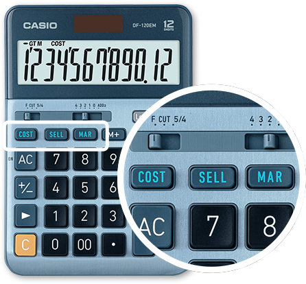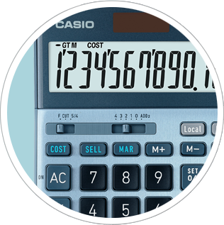 Il calcolo del profitto consente di determinare il costo, il prezzo di vendita e il margine. La semplicità di digitazione e il display trasparente semplificano in modo particolare i calcoli di tipo commerciale.