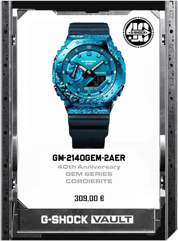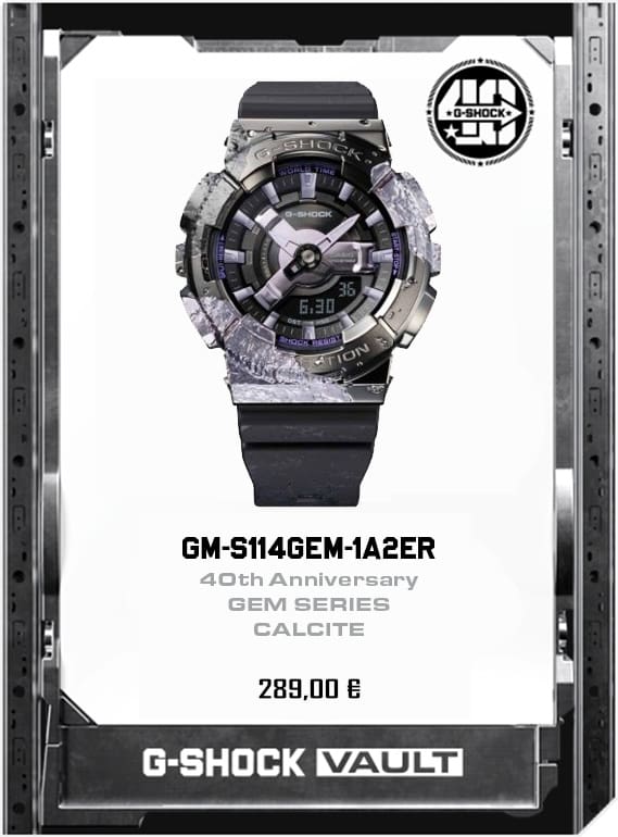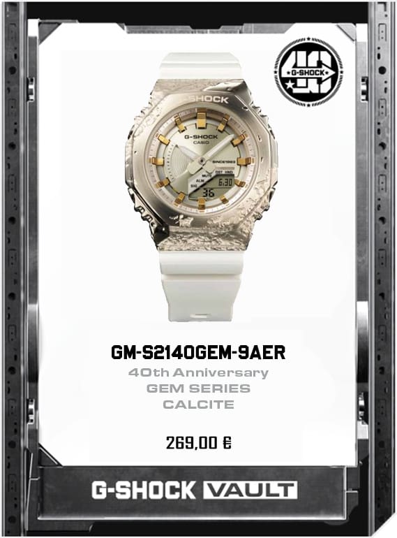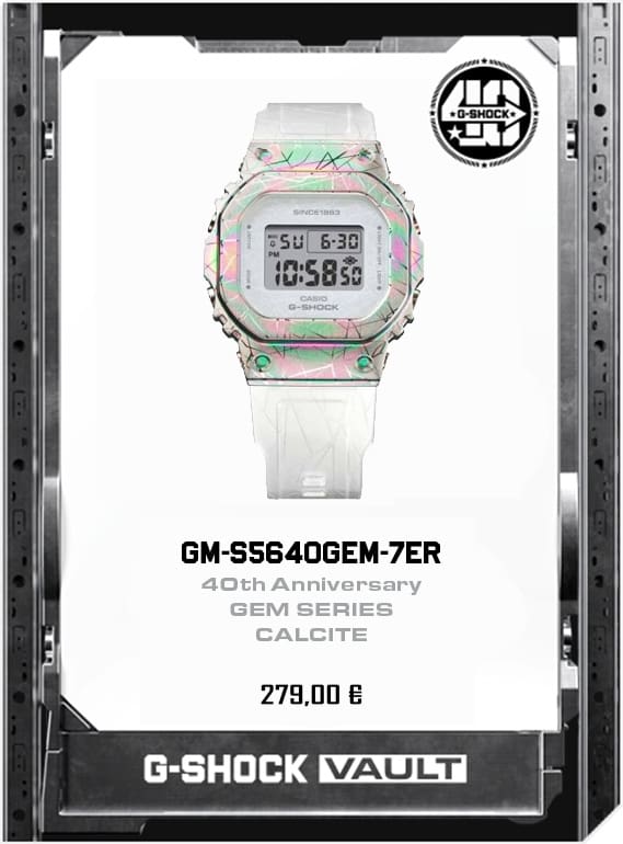 Ispirato al celebre GA-110, questo orologio presenta cassa, cinturino e pulsanti laterali trasparenti per creare un effetto cromatico uniforme. Non mancano dettagli speciali ad arricchire l’intero design come le stelle posizionate a ore 3 per rendere omaggio al 40° anniversario.