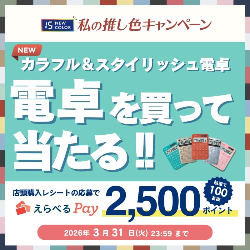新製品スタイリッシュ電卓/カラフル電卓を買うと、抽選でえらべるPayが当たるキャンペーンを実施中!